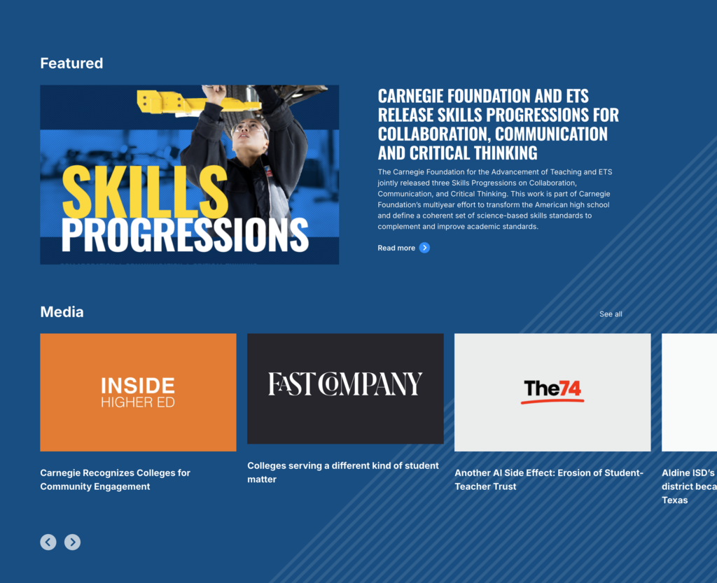 Rebuild the content managment system (CMS) for the Carnegie Foundation website. Improve efficiency and ease of use for the marketing team while leveraging existing assets and legacy content and retaining user functionality.
